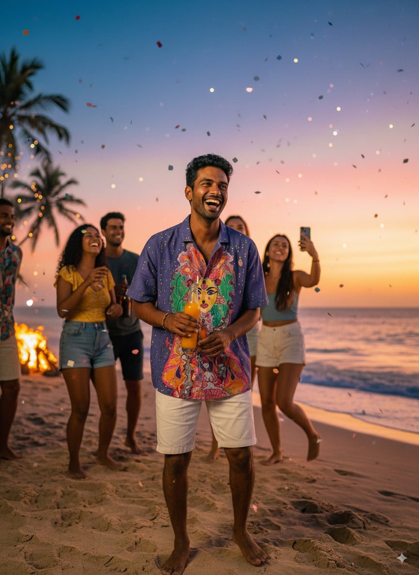 Owing to its 'free size' and a playfull display of colours, this Raasleela Shirt could be your one-of-a-kind, head-turner wearable art, to be possessed.